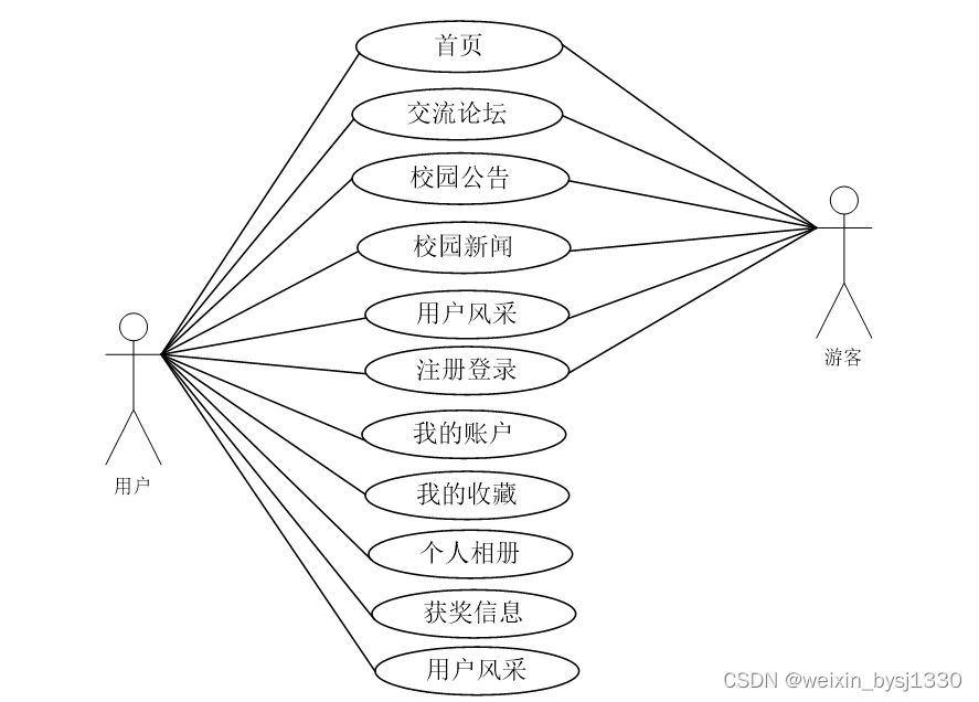 图2-1 校园社交网站前台用户角色用例图