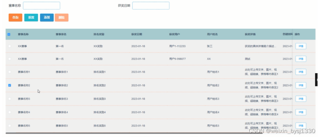 图4-16 获奖信息管理界面图