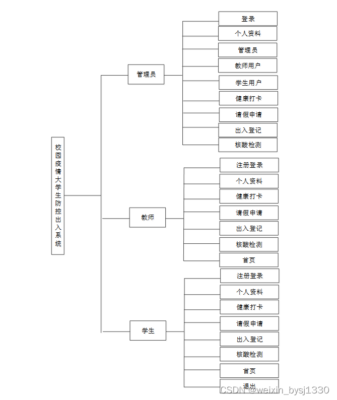 图3.1 校园疫情大学生防控出入系统功能模块图