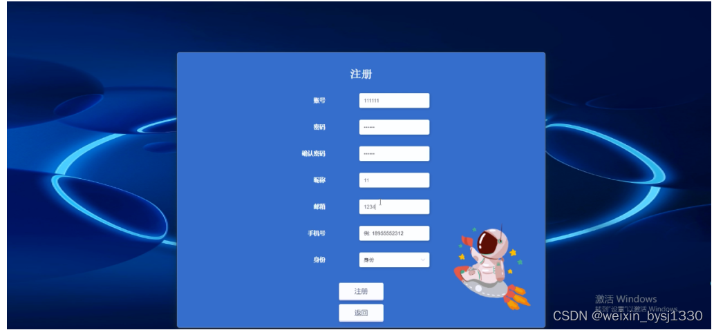 (1)注册登录:当学生想要对系统中所实现的功能进行查询管理的时候,就必须进行登录到系统当中,如果没有账号的话,在登录界面,点击“注册”按钮就会跳转到注册的界面,根据提示填写好注册信息,添加提交,学生的信息在数据库中就添加完成了,然后再输入填写好的账号和密码进行登录;