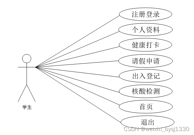 校园疫情大学生防控出入系统中学生用户角色用例图如图2.1所示: