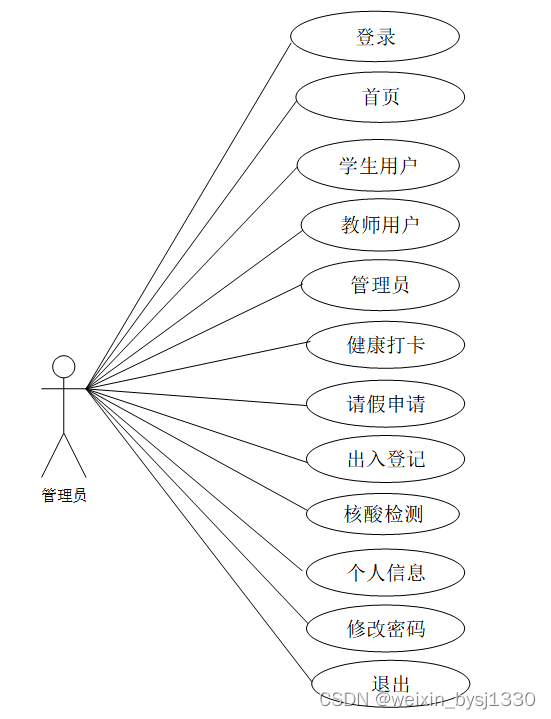 校园疫情大学生防控出入系统中管理员角色用例图如图2.3所示: