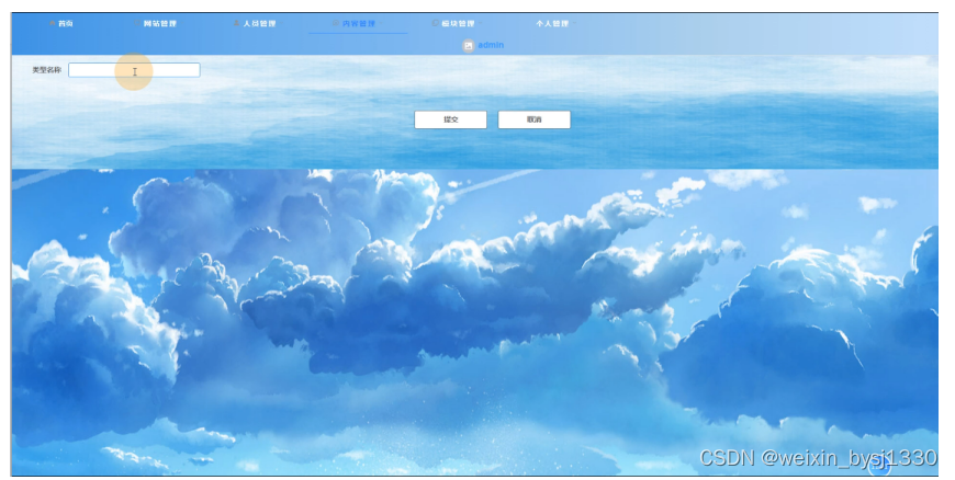 管理员对文章分类管理进行添加类型名称等内容进行添加、查看、修改以及删除等操作。程序效果图如下图5-4所示: