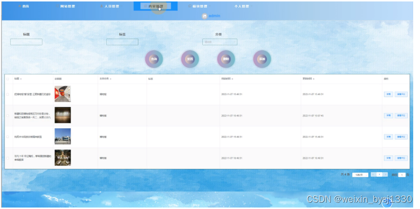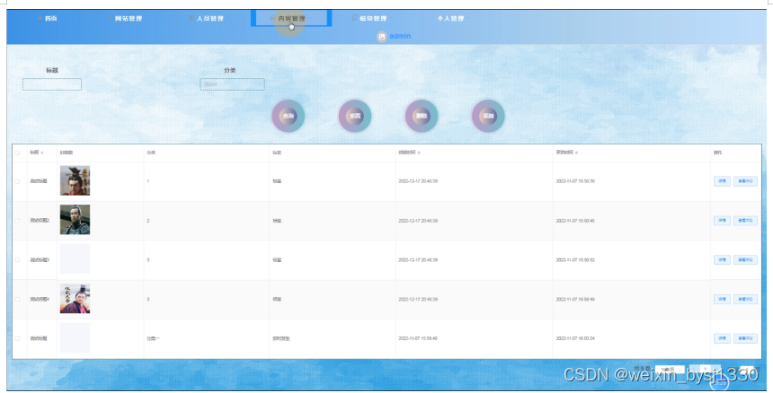 (4)管理员可以在后台方便管理后台网页的各种信息;