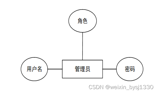 管理员实体主要存储管理信息包括用户名、密码、角色。管理员信息属性图如图4-5所示。