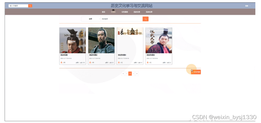 实践证明,历史文化学习与交流网站有着非常好的发展前景,经过测试运行,系统各项功能都十分完善,界面漂亮,使用方便,操作容易,在技术理论上已经成熟。