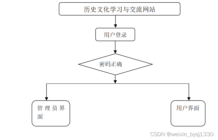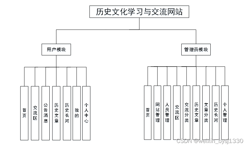 (1)功能要求:管理员、用户,管理员:管理员:首页、网站管理(轮播图、公告栏)、人员管理(管理员、普通用户)、内容管理(交流区、交流分类、历史文章、文章分类)、模块管理(历史长河)、个人管理(个人信息、修改密码)系统管理,