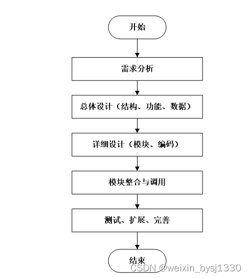 毕业清仓微信小程序开发时,首先进行需求分析,进而对系统进行总体的设计规划,设计系统功能模块,数据库的选择等,本系统的开发流程如图3-1所示