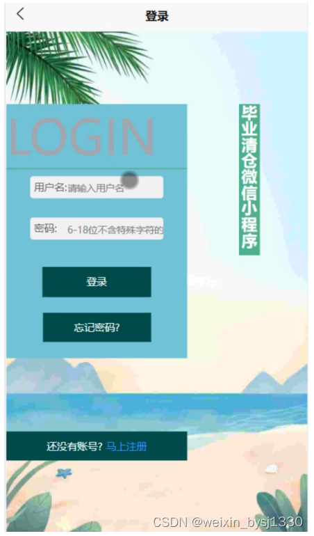 关键词:毕业清仓微信小程序;java语言;MYSQL数据库;SSM框架;