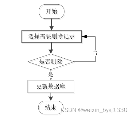 管理员可以对清仓信息等进行信息的删除,对要删除的信息进行选中后,点击删除按钮,系统会询问是否确定,若点击确定,则系统会删除掉选中的信息,并在数据库内对信息进行删除,删除信息流程图如图3-6所示。