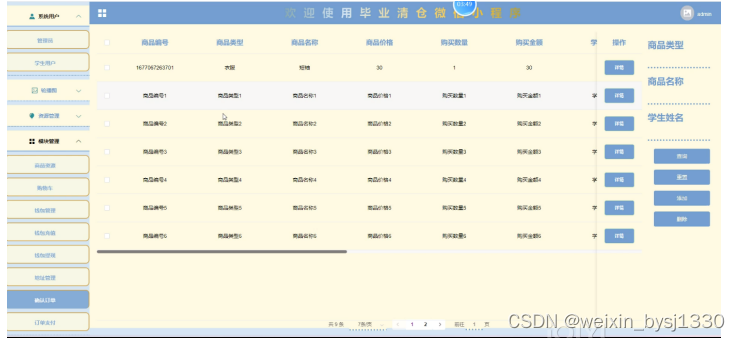 随着网络不断的普及发展,毕业清仓微信小程序依靠网络技术的支持得到了快速的发展,首先要从用户的实际需求出发,通过了解用户的需求开发出具有针对性的清仓功能,利用目前网络给用户带来的方便快捷这一特点对系统进行调整,设计的系统让用户的使用起来更加方便,本系统的主要目的就是给用户带来方便,用户只要在家中就可以进行交易。同时随着电子商务的发展网上商品已经受到广大用户的喜爱。
