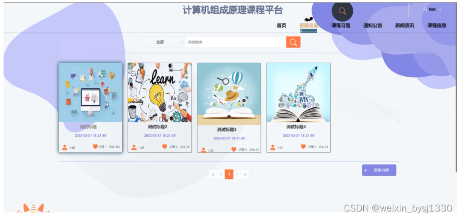交流答疑:用户可在此页面通过搜索查看交流帖子信息,并可编辑封面图、标题、标签、分类等进行发布帖子,可对交流帖子进行点赞、收藏、发布评论和回复等操作,如图5-13 5-14所示。
