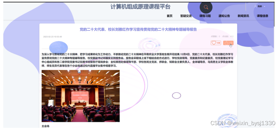 新闻资讯,在用户此页面中可搜索查看管理员发布的新闻资讯信息,并根据需求进行点赞、收藏、发表评论等操作,如图5-15所示。
