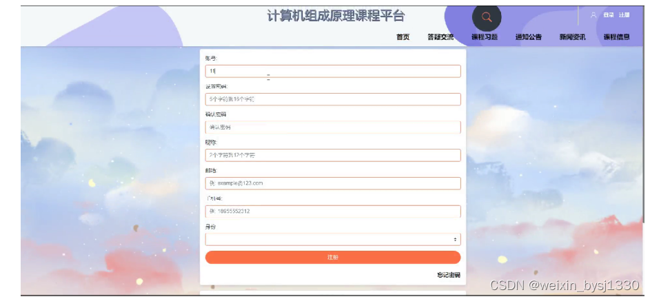 通过用户注册可以填写账号、密码、昵称、邮箱、身份、手机号、用户姓名等内容,如图 5-9 5-10所示。
