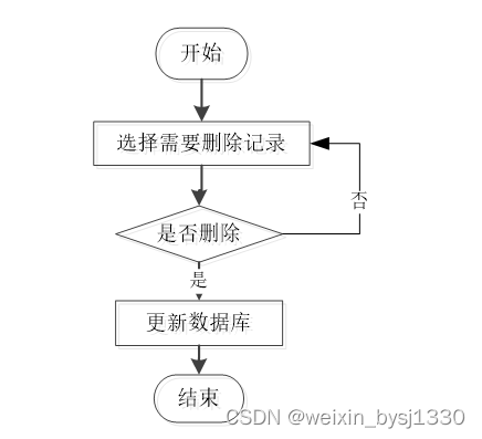 管理员可以对信息等进行信息的删除,对要删除的信息进行选中后,点击删除按钮,系统会询问是否确定,若点击确定,则系统会删除掉选中的信息,并在数据库内对信息进行删除,删除信息流程图如图3-6所示。