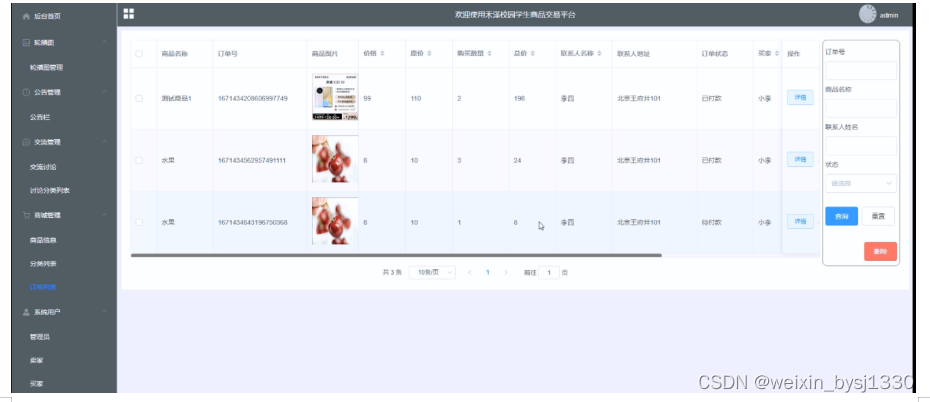 订单列表管理界面如下图所示。