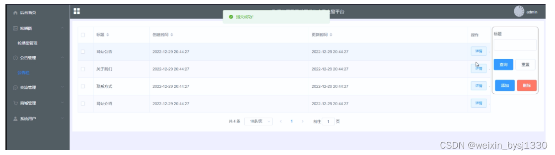 公告管理界面如下图所示。