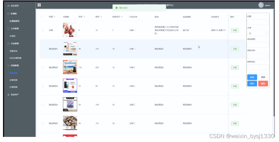 商品信息管理如下图所示。