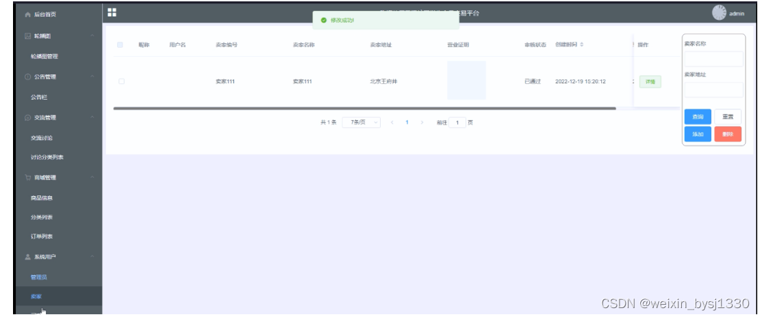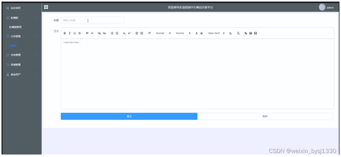 | 前置条件 | 管理员登录成功并跳转到后台主界面 |