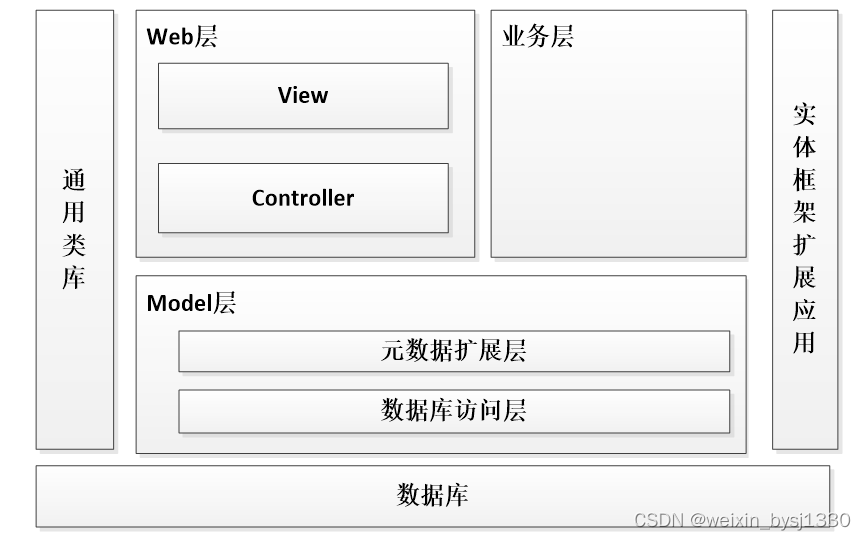 本记账管理系统的架构设计主要分为可以3层,主要有Web层,业务层,Model层。其中web层还包括View层和Controller层,Model层包括元数据扩展层和数据访问层。