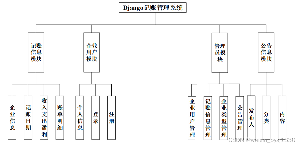 记账管理系统的功能主要分为前台用户根据自己的需求进行注册登录,进行记账信息输入操作。后台系统管理员主要对用户的记账信息,对注册用户,公告数据进行管理。