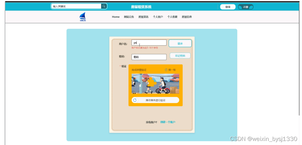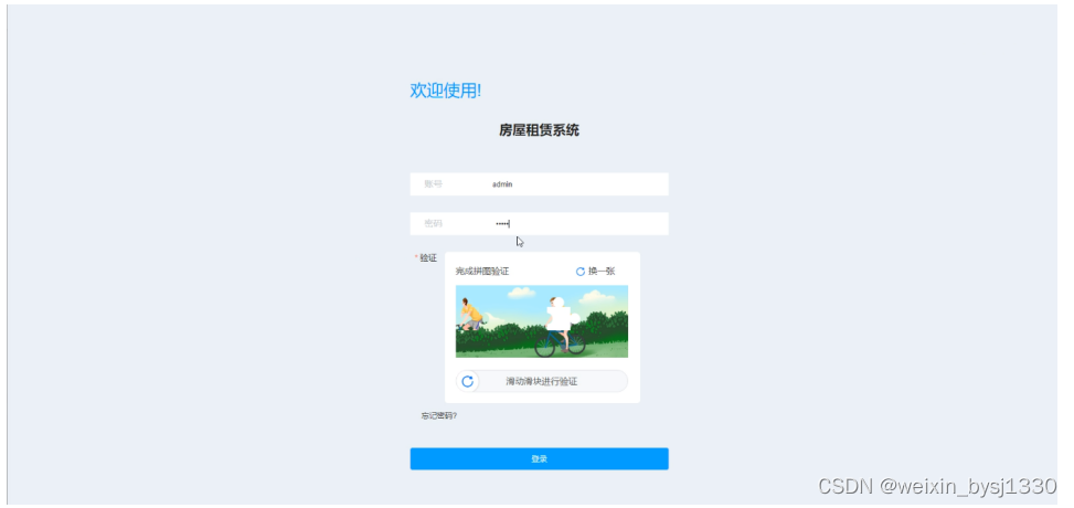 管理员登录,通过填写注册时输入的账号、密码、滑动滑块进行验证码进行登录,如图5-6所示。