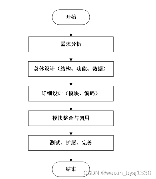 房屋租赁系统开发时,首先进行需求分析,进而对系统进行总体的设计规划,设计系统功能模块,数据库的选择等,本系统的开发流程如图3-1所示