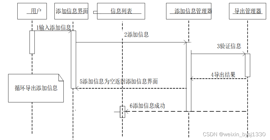 管理员以及用户登录后均可进行添加信息操作,添加信息模块顺序图如图4-4所示。