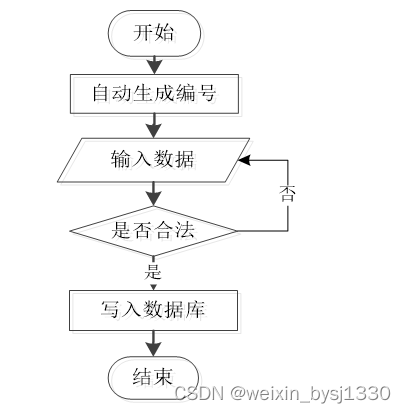 管理员可以对租赁信息等进行信息的添加,用户和房东也可以对自己权限内的信息进行添加,输入信息后,系统会自行验证输入的信息和数据,若信息正确,会将其添加到数据库内,若信息有误,则会提示重新输入信息,添加信息流程如图3-4所示。