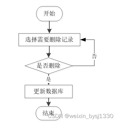 用户可选择要删除的信息进行信息删除操作,在删除信息时系统提示是否确定删除信息,是则删除信息成功,系统数据库将信息进行删除。删除信息流程图如图2-4所示。