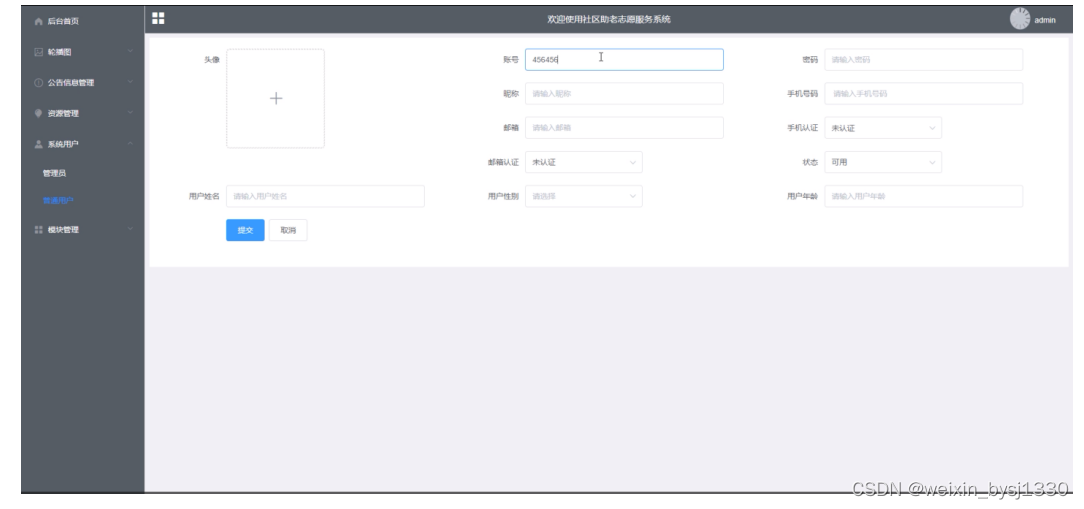 5.修改用户信息,可以修改用户密码或者用户名等一些个性化操作。