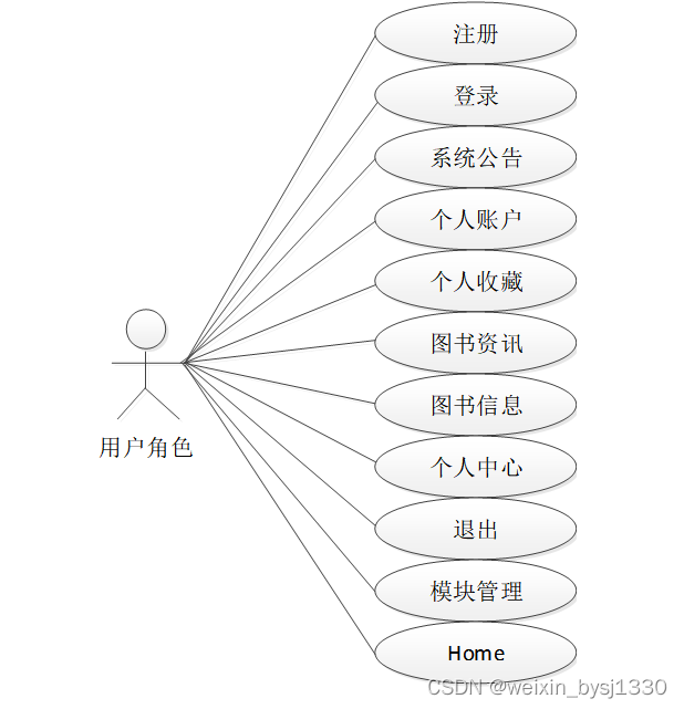 通过2.3功能的分析,得出了本图书管理系统的用例图: