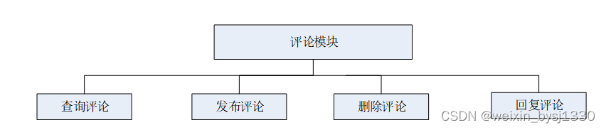 图书管理系统是一个交流性质的公开平台,用户用户可以在平台上交流,增加用户之间的互动性。但是同时也为了更好的规范评论的内容,给予管理员删除不合适的言论的功能,所以需要专门设计一个评论管理模块,具体的结构图如下: