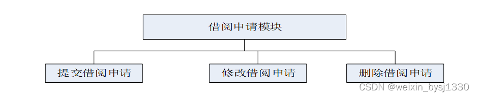 图书管理系统最重要的一个功能就是借阅,其模块功能结构,具体的结构图如下: