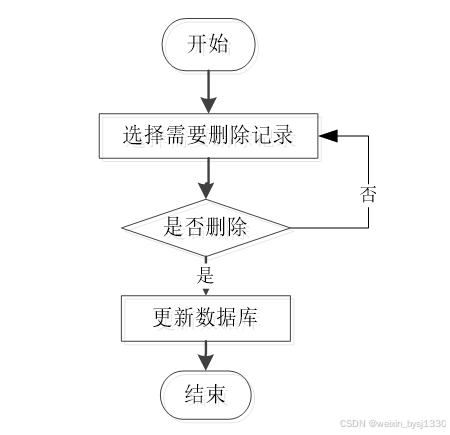 用户选择要删除的信息并单击Delete按钮。系统提示是否删除信息。如果用户想要删除信息,系统将删除信息。系统数据库删除信息。删除信息流程图如图3-5所示。