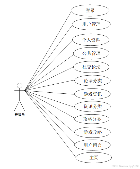 web后台管理上的管理员是维护整个游戏社交网站中所有数据信息的。管理员角色用例如图2-4所示。