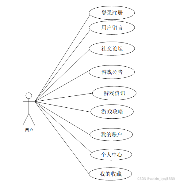 通过2.3功能的分析,得出了本游戏社交网站的用例图: