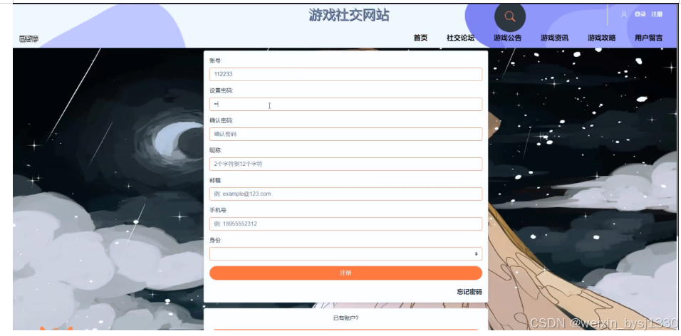 (1)用户注册登录:用户注册为会员并登录游戏社交网站;用户对个人信息的增删改查,比如个人资料,密码修改。