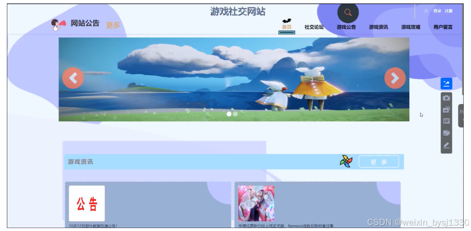 (3)游戏公告:在首页导航栏上我们会看到“游戏公告”这一菜单,我们点击进入进去以后,会看到所有管理员在后台发布的公告信息;
