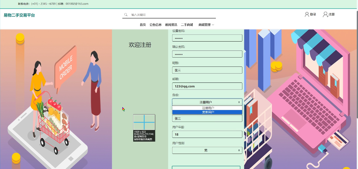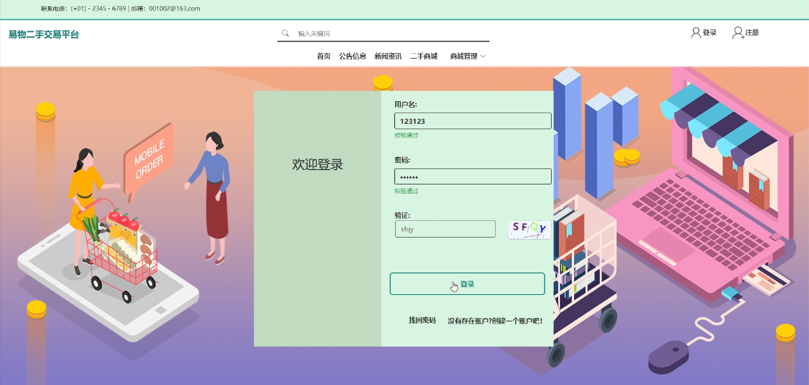 本文通过市场调研,根据实际要求决定采用Java开发语言,通过Springboot+jsp框架,并结合MySQL数据库进行数据存储和管理来设计与实现易物二手交易平台的各项功能,并具有操作简单,界面友好,数据安全,功能多样的特点,主要分析了用户需求和二手市场趋势,设计了一个便捷高效的易物二手交易平台,提供了一个获取二手商品信息和交易二手商品的渠道和管理工具,能够实现快速的二手交易和管理功能。系统运行实现了包括但不限于公共管理、用户管理、资讯管理、商城管理(二手商城、分类列表、订单列表、订单配送)等二手交易功能。