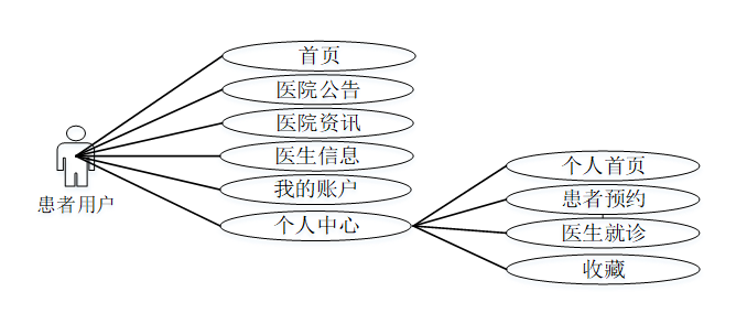 - 个人中心:患者用户可对个人首页、患者预约、医生就诊、收藏等信息进行管控。例如:患者用户。点击“患者预约”,可查看自己的患者预约信息,进行增改删查操作,支持患者姓名、医生姓名、支付状态搜索,可点击查看详情,并可点击支付(微信、支付宝、网银)操作;点击“医生就诊”,可查看自己的医生就诊信息,进行查询和删除操作,支持建档时间、医生姓名、就诊结果、支付状态搜索,可点击查看详情,并可点击支付操作;点击“收藏”,可管理所有收藏信息,包括医院资讯、医生信息等收藏信息,进行查看和删除操作,点击可查看详情。
