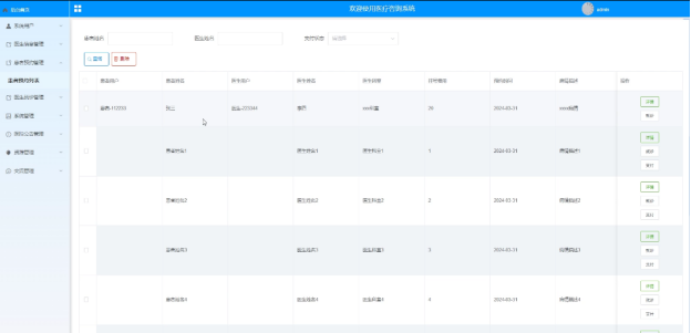 - 系统管理:管理员可对首页的轮播图进行管理,进行增删改查操作,支持标题搜索,可点击查看详情。