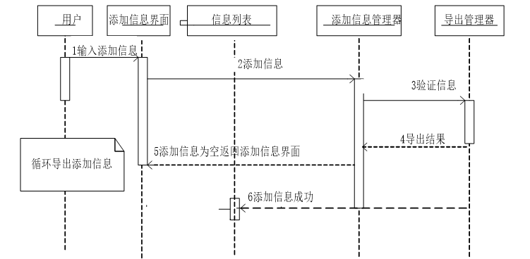 管理员以及用户登录后均可进行添加信息操作,添加信息模块顺序图如图2-7所示。