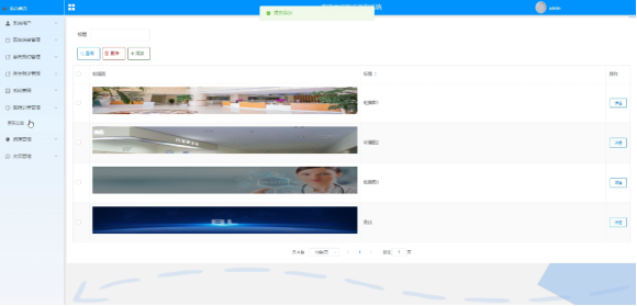 管理员可对首页的轮播图进行管理,进行增删改查操作,支持标题搜索,可点击查看详情。界面如下图所示。