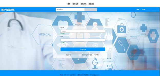 - 医院公告:医生用户可查看包括关于我们、联系方式、网站介绍等管理员发布的所有医院公告,点击可查看详情。