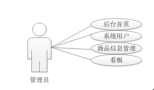 管理员是维护整个基于Hadoop+Echarts的数据可视化平台中所有数据信息的。可以进行登录,对系统用户、商品信息、数据看板等信息进行管理,对管理员角色用例如图2-1所示。