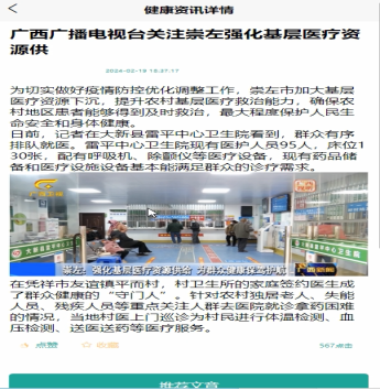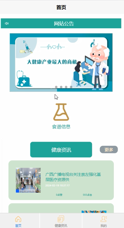 (2)浏览健康资讯:用户可以浏览主页面的健康资讯来了解系统的最新健康资讯。