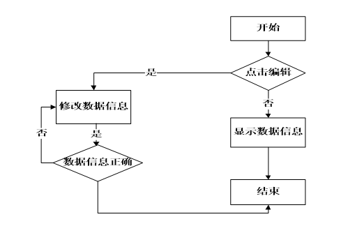 很多时候,面对系统中的大量数据,难免会发现一些错误,因此需要及时纠正错误,本系统也提供数据后期的修改功能,其流程见下图。但是更新的数据也需要通过数据有效性检验。能够最终写入数据库则说明修改的数据是符合要求的。