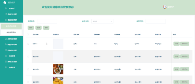 (2)食谱信息:对食谱信息进行维护,新增、删除、修改信息。