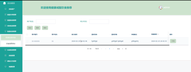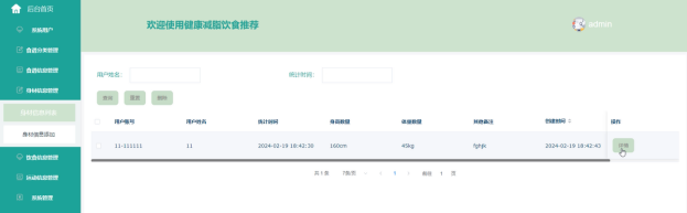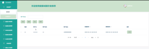 (1)系统用户:管理员可以对健康减脂饮食推荐小程序中的管理员以及前台注册的用户进行审核管理。